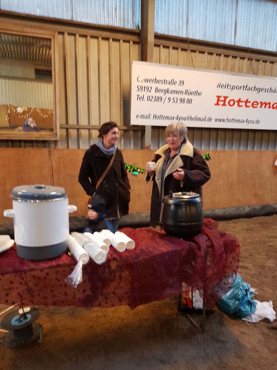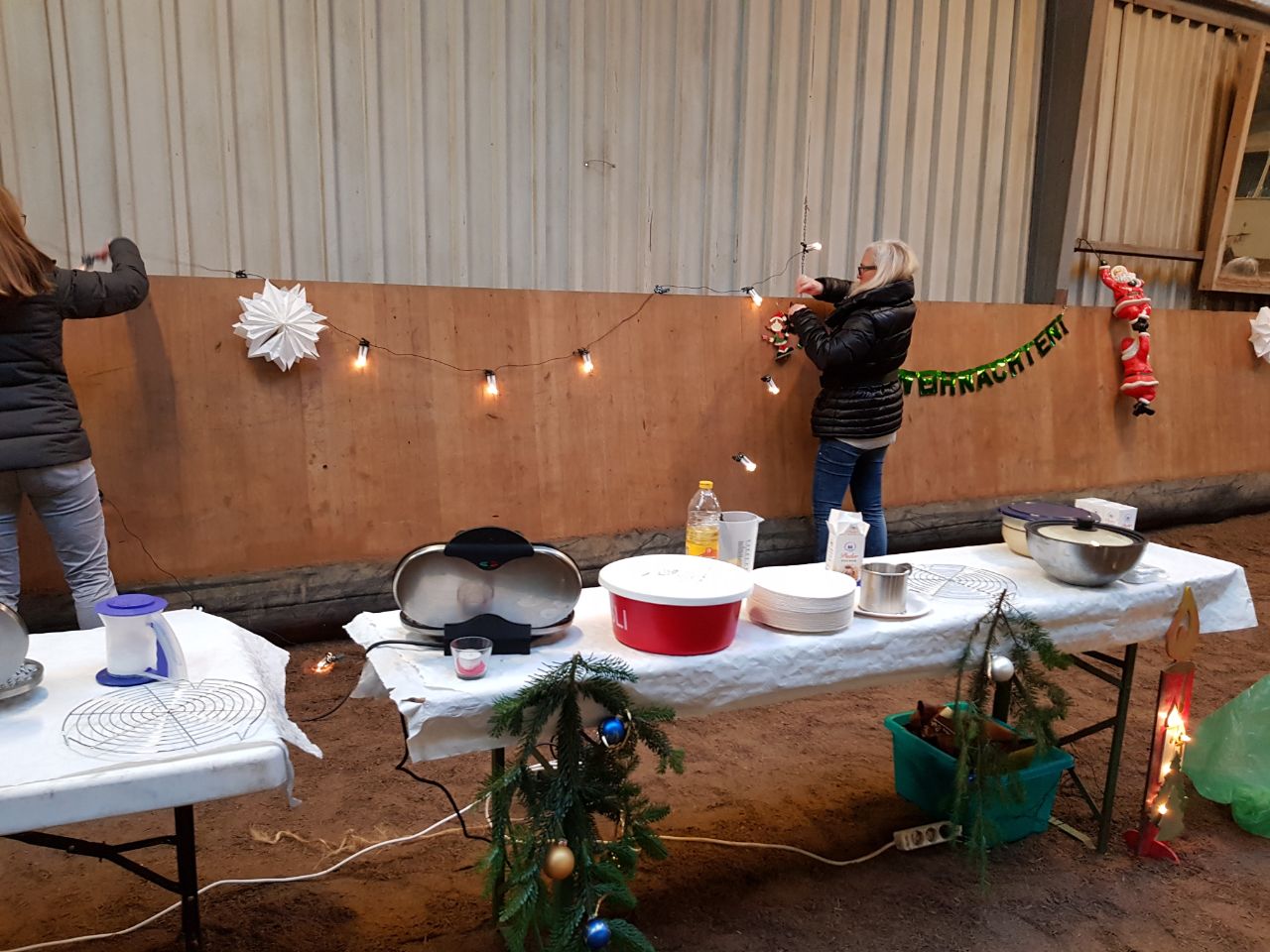 Nach umfangreichen Vorbereitungen fand am Samstag 16.12.2017 die Weihnachtsfeier der Jugendabteilung 2017 statt. In der Reithalle wurde Selbstgebasteltes und Selbstgebackenes verkauft, es gab eine kleine Tombola, Glühwein und Kako als Spende vom Verein, Waffeln, Bratwürstchen und Kinderpunsch vom Reiterstübchen, Reitvorführungen, Weihnachtslieder, ein Weihnachtsspiel, Bilder des letzten Jahres……und…..und….und. Wir möchten uns ausdrücklich bei Reiner und Suse für die Unterstützung bei der Vorbereitung und Durchführung bedanken. Weiterhin bei Jutta für die Spenden und natürlich bei unserer Jugendwartin Sandra, ohne die es diese Veranstaltung gar nicht geben würde. Vielen Dank auch allen, die beim Basteln und Backen geholfen haben.